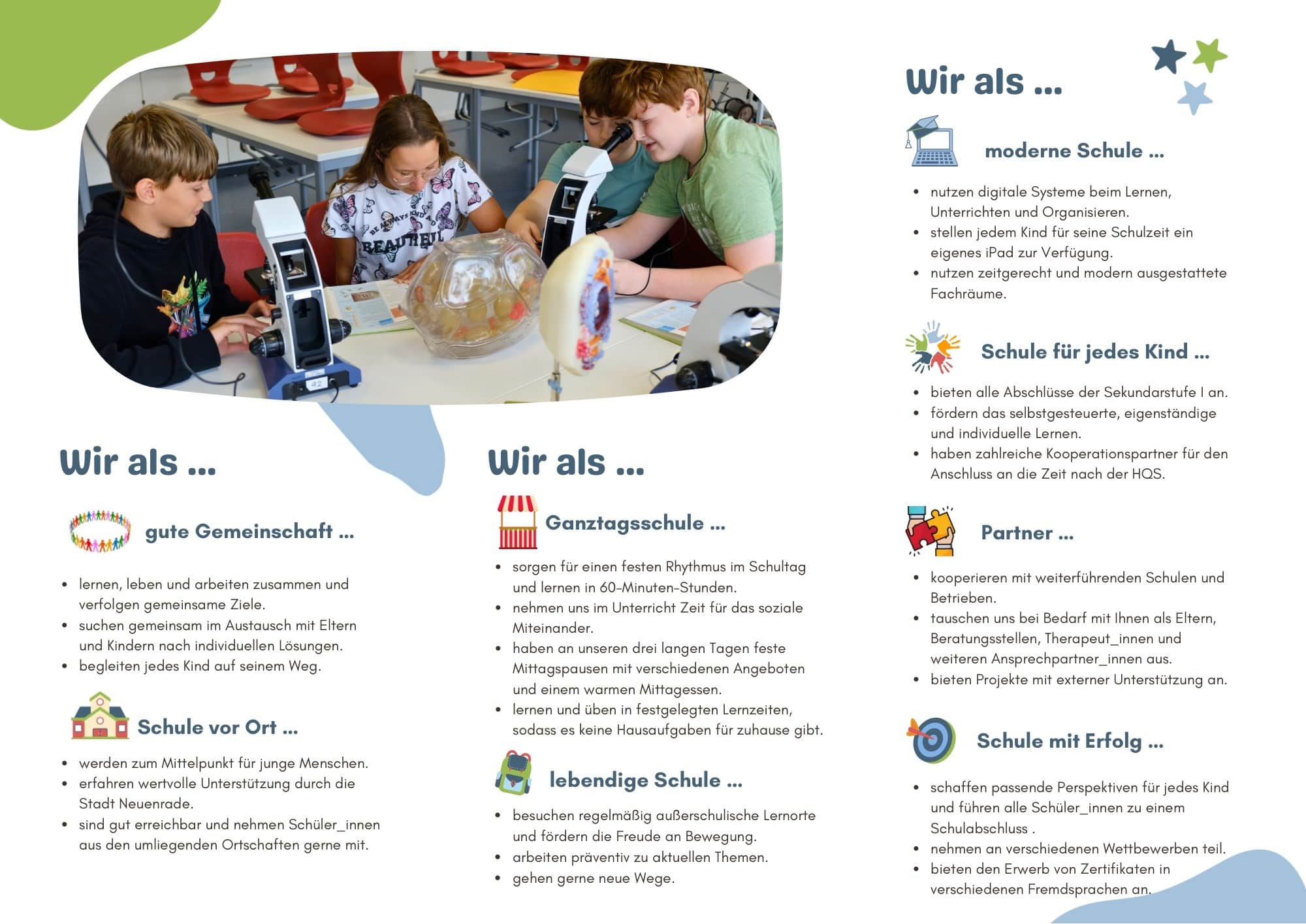 Die Entscheidung „Wohin geht es nach Klasse 4?“ ist nicht immer leicht zu treffen. Um euch und Ihnen einen Einblick in unsere Arbeit zu geben, gibt es hier einen Überblick.